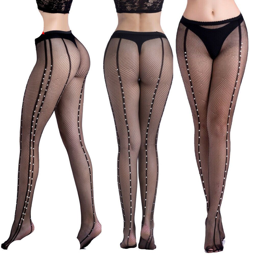 Womens Rhinestone Crotchless Fishnet Black Pantyhose Hosiery Thigh High Stocking Ebay