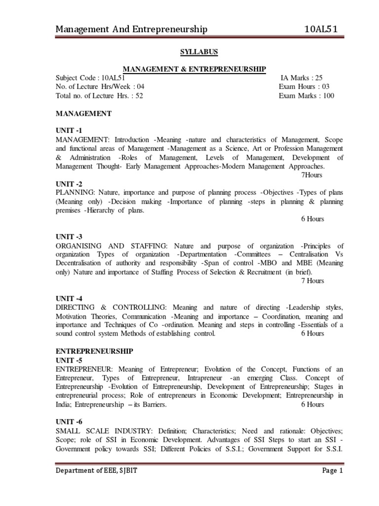 V Management And Entrepreneurship 10al51 Notes Pdf